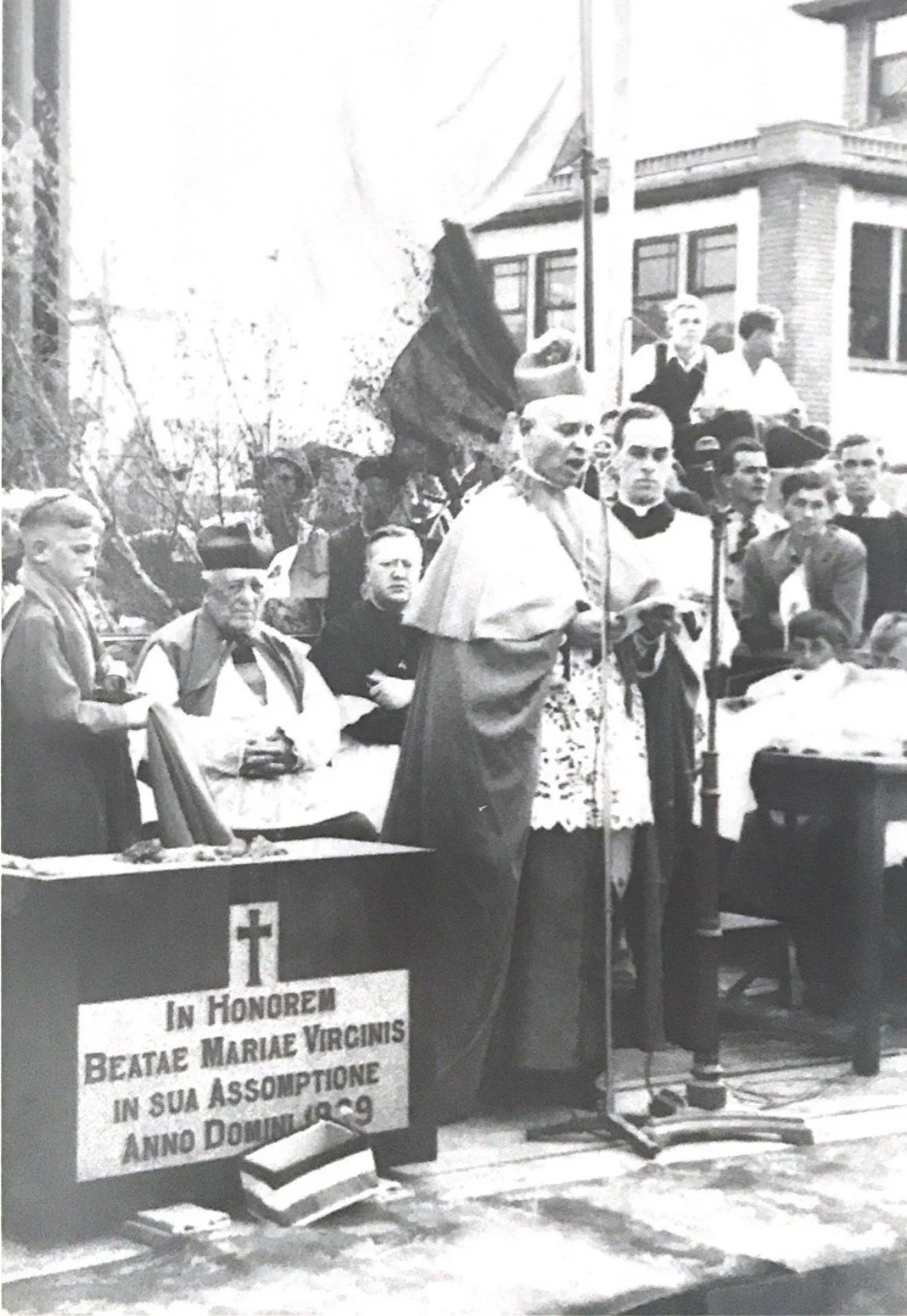 Vers la fin de la tournée, le 13 juin 1939, le roi George VI et la reine Elizabeth sont arrivés à Moncton au Nouveau-Brunswick. Par hasard, ceci correspondait précisément avec le jour de la bénédiction de la pierre angulaire de la cathédrale ! La pierre angulaire, telle une capsule temporelle, contient donc une pièce de monnaie commémorant la visite des monarques, en plus de la bénédiction de la pierre et de la cathédrale, de médaillons de l’Assomption et de la Vierge Marie, et de deux exemplaires des journaux francophones de Moncton: « La voix d’Évangéline » et « L’Ordre social ».